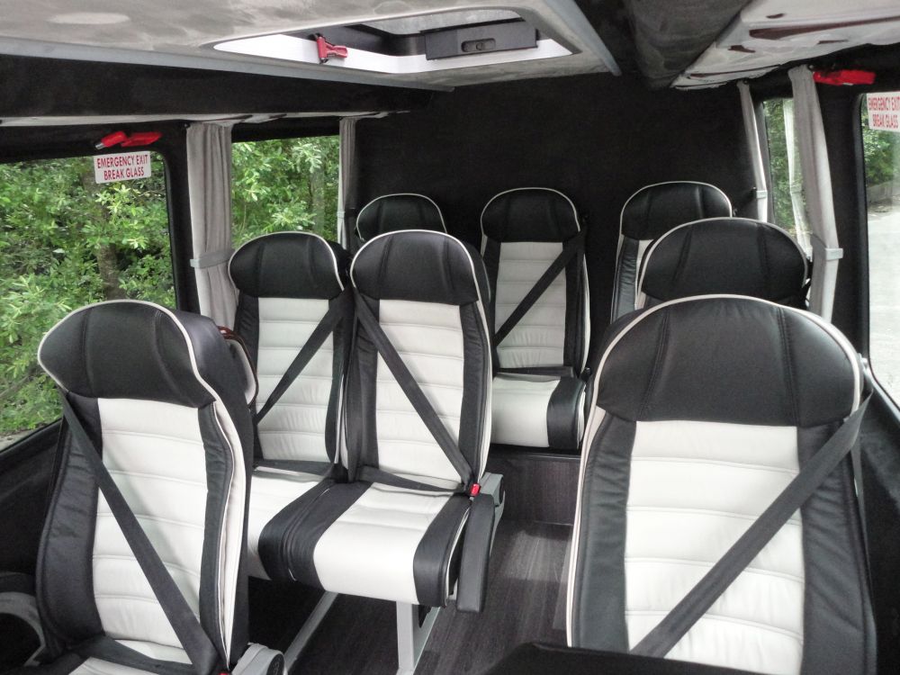 For larger families or for people who like the option of moving around comfortably our mini buses are Mercedes Sprinters and have various seating configurations from 9 to 16 seats. These vehicles have large luggage capacity in a secure partitioned area.